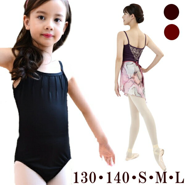着痩せ バレエ レオタード ジュニア〜大人 背中レースが綺麗なキャミソールレオタードです(2色展開)(130cm 140cm S M L)(大人バレエ バレエ用品 大人 子供 ジュニア バレエレオタード スカートなし レッスン着 黒 ブラック ワイン ブラ差し込み可能 )
